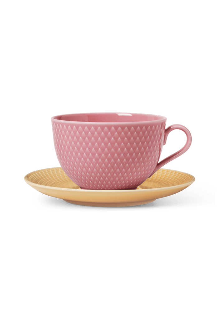 Lyngby Rhombe Color Tea Cup With Matching Saucer