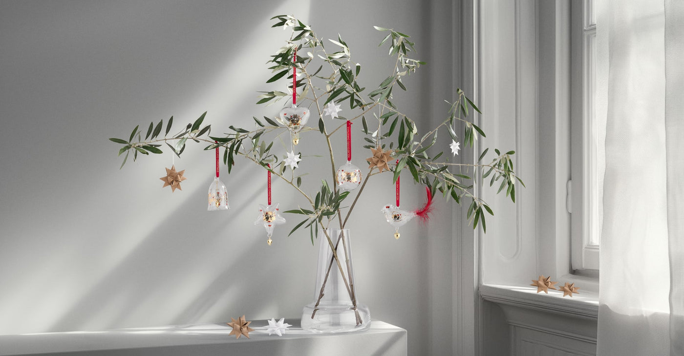 Behind the elegant pendant is Danish designer Ann-Sofi Romme, who created the first Holmegaard Christmas Bell with motif in 1993. Since then, it has become an entire collection of bells, hearts, stars and baubles in mouth-blown glass, which each year gets a new, beautiful Christmas motif—the 2024 collection has the braided paper star as the focal point for Christmas coziness.