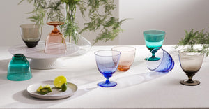 The beautiful colors of Holmegaard's Flow Collection instantly liven up your table setting and reinvigorate your senses. The glasses have a classic shape and are designed with a discrete wave pattern on the bottom, inspired by water ripples.