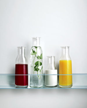 Cecilie Manz’s Minima carafe is a popular item and a great gift idea. The lid fits tightly on the bottles of the range for easy storage of the contents in the refrigerator and to prevent absorption and transfer of flavours. All bottle sizes Minima range won the Danish Design Award 2008/2009 for combining Scandinavian modernism and functionality.