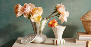 This wonderful vase from the Signature Collection, has an included ceramic plate with holes inspired by the lotus planet's seed stand, which makes it possible to arrange the flowers exactly as you like them. Of course, the vase can also be used in the traditional way without the plate for a regular tied bouquet.