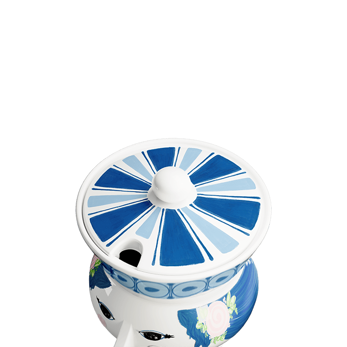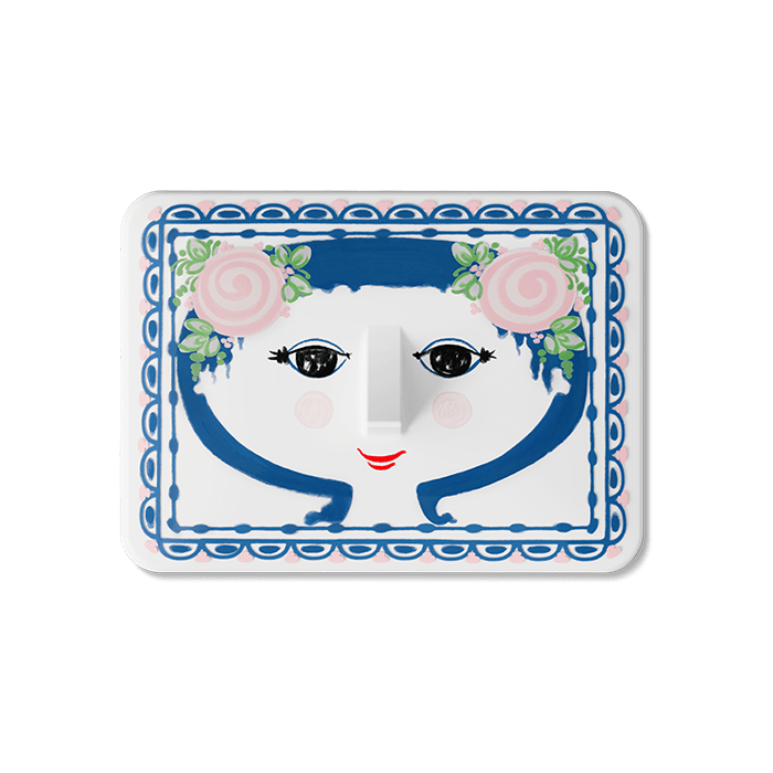 Invite Dora inside and let her bring joy to the home with her pretty colors, whimsical details and iconic decorations. In addition to the soft, round shape, the Dora bowl also has the well-known triangular nose, almond-shaped eyes, smiling lips and rose-red cheeks – and is also fully decorated with its own very special colorful decals such as blue hair and circles, dots and stripes in blue and light blue. In the lid, you will find an opening so there is room for one of your favorite teaspoons to stay in the bowl, as befits a real sugar bowl. The Dora bowl holds 10.4 oz and stands beautifully in shiny glazed porcelain – perfect for adding an extra festive touch to the table setting in the playful home decor.