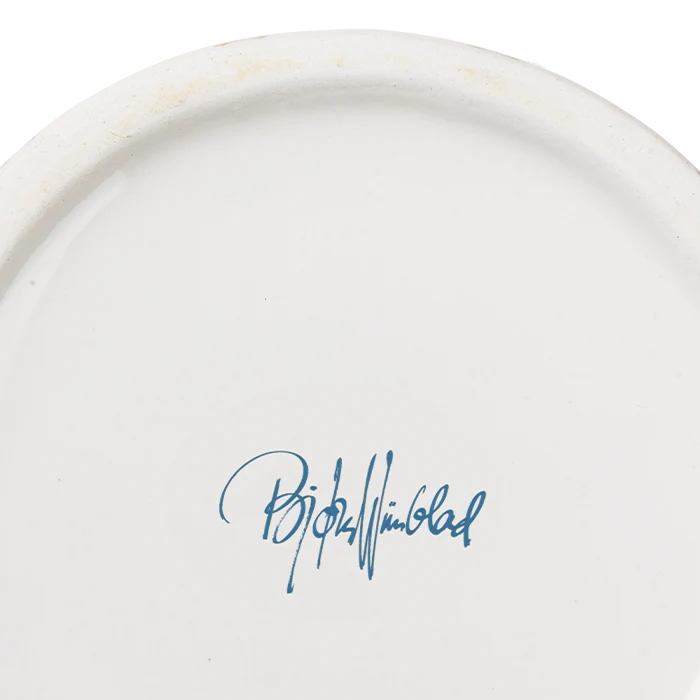 Bjørn Wiinblad embodies everything quirky, whimsical, creative, and wonderful. With the charming and smiling Eva vase from Bjørn Wiinblad, featuring a romantic botanical print in blue and pink with roses and leaves on both the dress and hair, and sweet black bows on the neck, you can bring whimsy into full bloom throughout your home. The vase stands 7.3" tall with a diameter of 4.9" and is made of glossy glazed ceramic. The face, with almond-shaped eyes and a pointed nose, is based on Wiinblad's original design, while the colorful dress pattern is a reinterpretation of Bjørn Wiinblad's illustrations from his archives. The shape is inspired by Wiinblad's original and iconic Eva figure, known for its broad head and conical body.