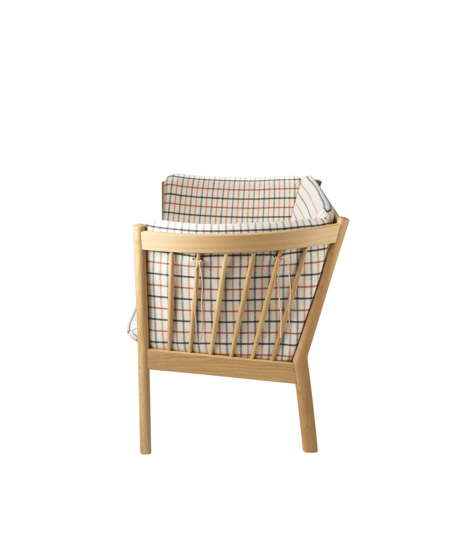 The two-seater spoke-back sofa is not only one of the most iconic furniture in the classic Danish design tradition, it also offers cosy, practical seating for the best moments of the day. The design is timeless in the best sense of the word, and there are lots of ways of varying the look with cushions. Erik Ole Jørgensen’s range of spoke-back furniture is from 1978 and makes clear references to the other great designers who laid the foundations of FDB Møbler. Erik Ole Jørgensen had a background as both an upholsterer and a furniture designer, and perhaps this is why the interaction between cushions and furniture is especially successful here.