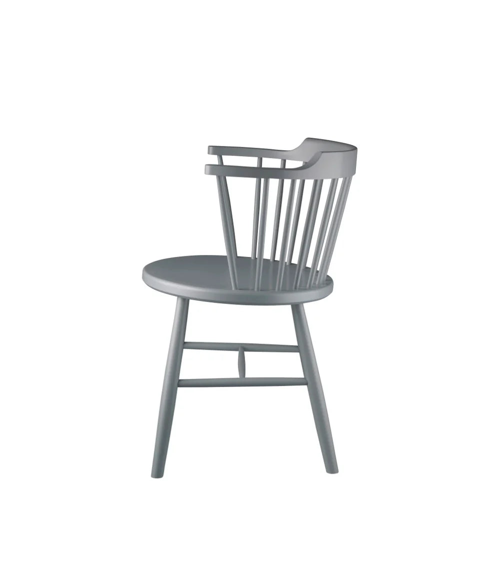 The J18 chair was designed by Børge Mogensen in 1945. Like Mogensen’s other well-known FDB chairs, this model is distinguished by its clean, Nordic design with no decoration or unnecessary trimmings, and where the focus is on function and simplicity. The comfortable chair was inspired by the old eighteenth-century English Windsor chairs. The solid backrest continues into the armrests, which fit under most tabletops. The comfortable, bowl-shaped wooden seat slopes gently backwards.