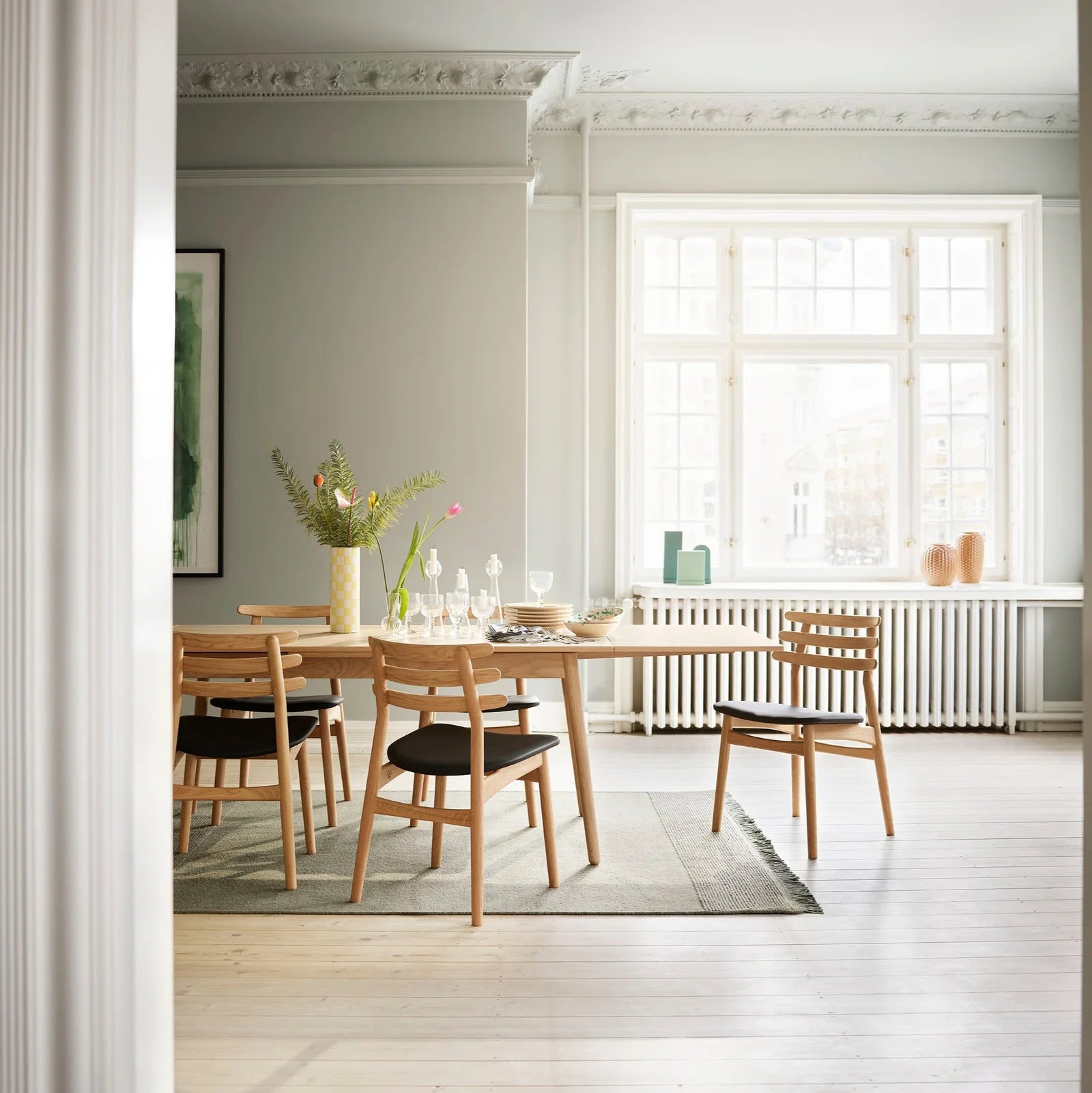 J48 - Chair Oak Black Painted Leather Black (Sierra SI1001M) by Poul M. Volther