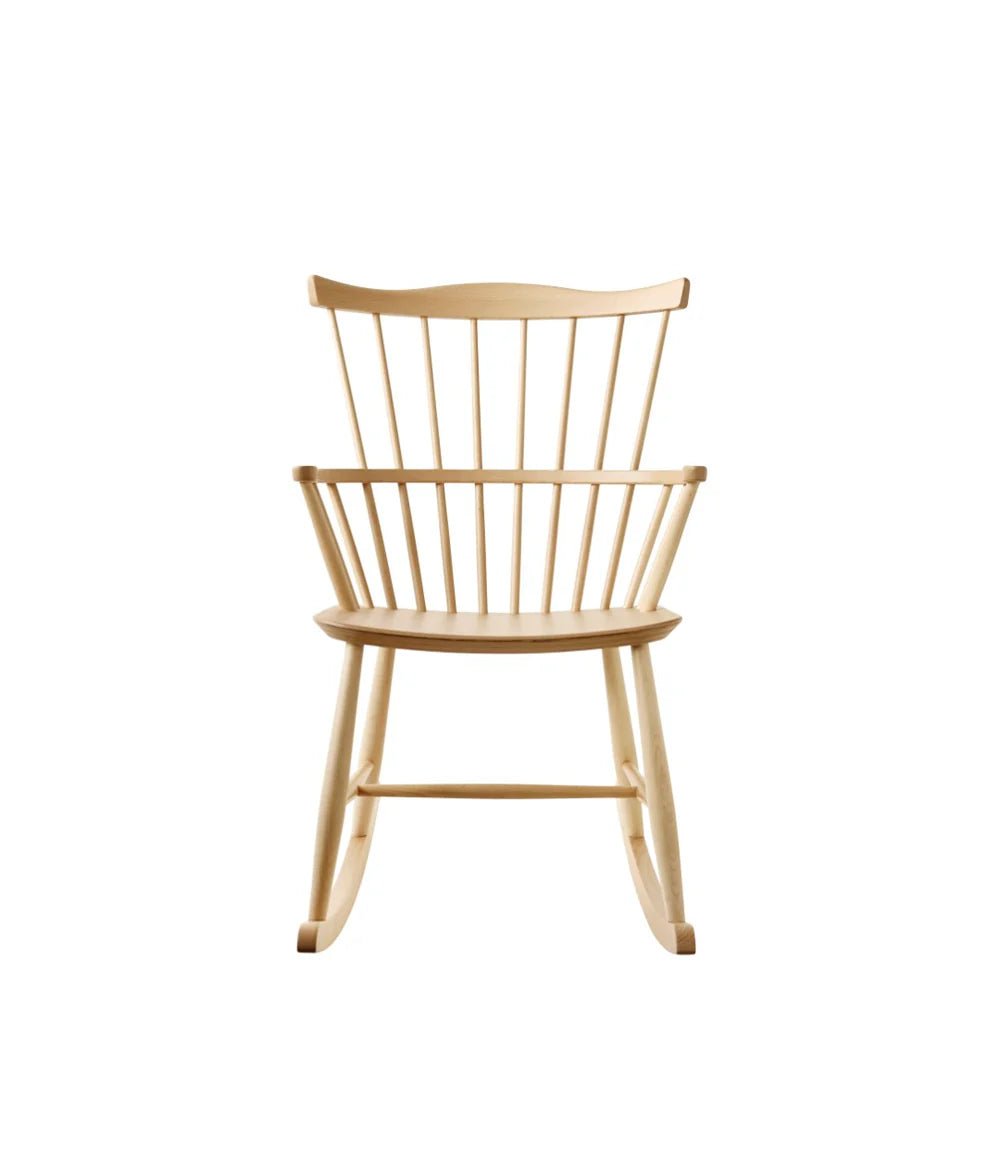 Both Børge Mogensen and Hans Wegner designed rocking chairs for FDB Møbler. In the 1950s Børge Mogensen was able to further improve on the already comfortable Windsor Chair when he added rockers to create the J52G rocking chair. The chair bears Børge Mogensen’s elegant, clean lines, and is available in many beautiful colours. A chair for total relaxation that fits into the living room or elsewhere around the home, wherever you want space for tranquility and contemplation.