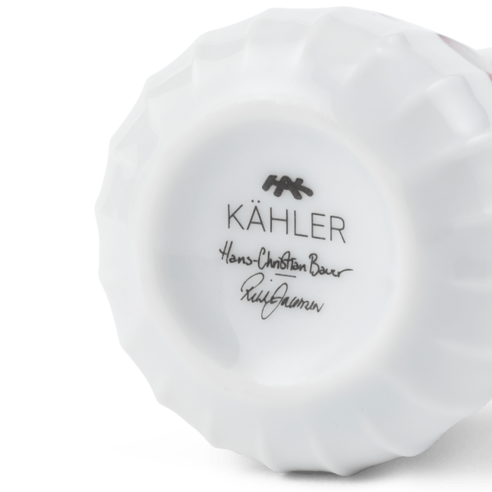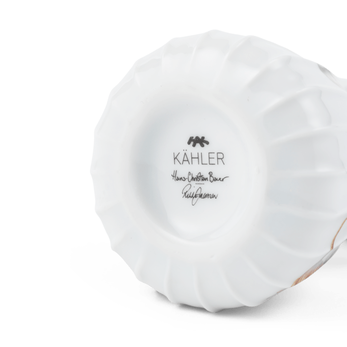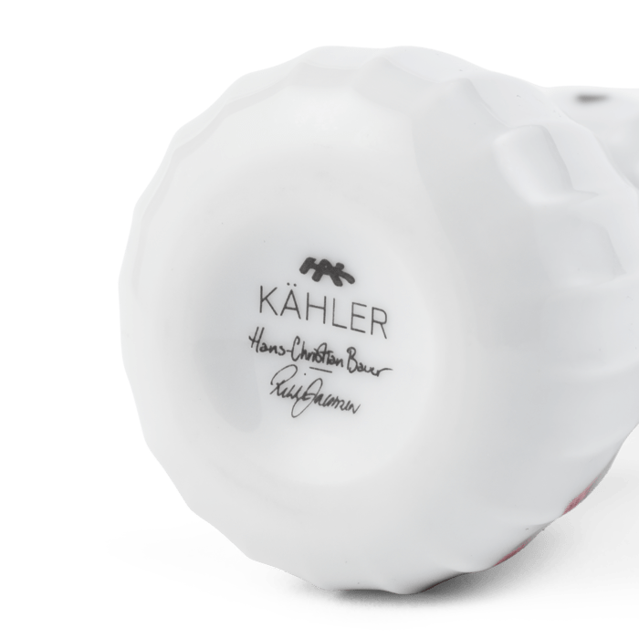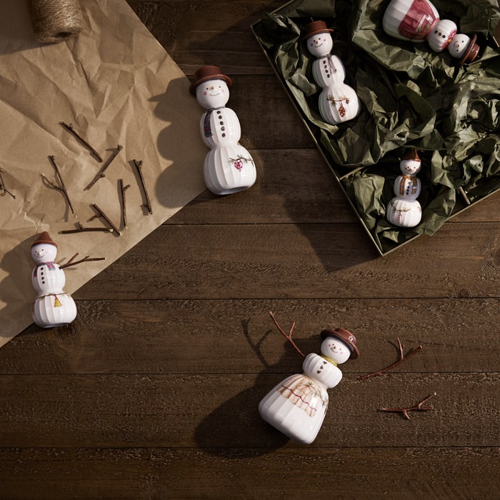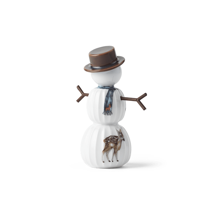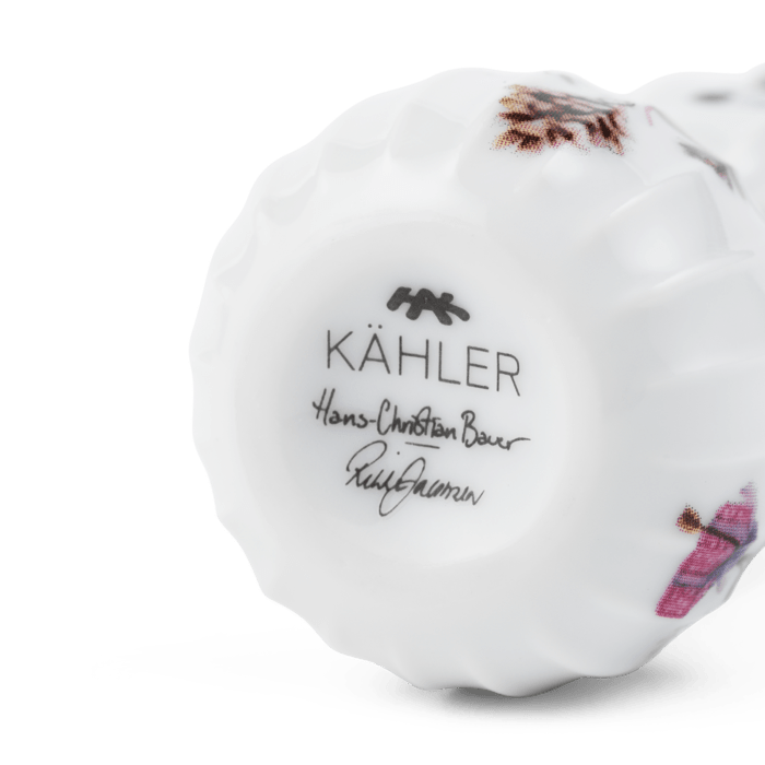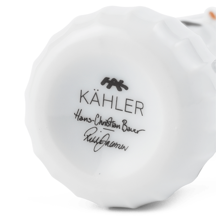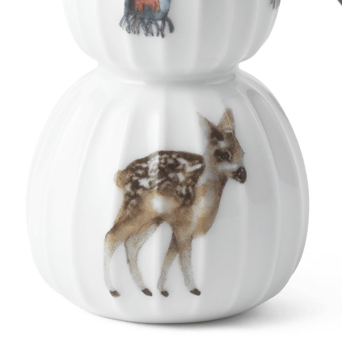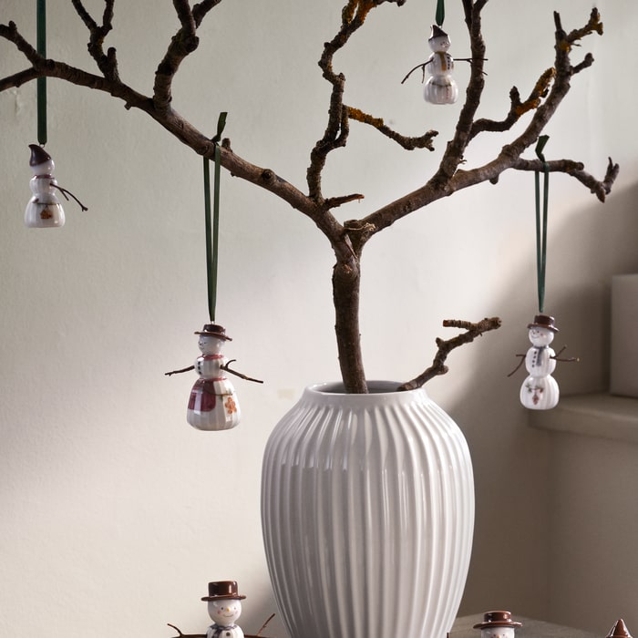 Christmas and handicraft traditions in beautiful harmony. With the family of snowmen from Kähler’s Hammershøi Christmas series, it's easy to bring some authentic yuletide spirit into your home. Naturally, the snowman wears a top hat, just as we would expect him to do. With a height of 4.5" and a diameter of 2.0", complete with the Hammershøi series’ iconic grooves that are characteristic of Hans-Christian Bauer’s dinnerware and table decorations. This model is the standing version of the Snowman, but you can also get a hanging version. Kähler’s snowman family consists of the Snowman, Snowwife, Snowboy and Snowgirl, all decorated in different ways using motifs from the Hammershøi Christmas series, painted in watercolor by Rikke Jacobsen and transferred to the snow-white porcelain.