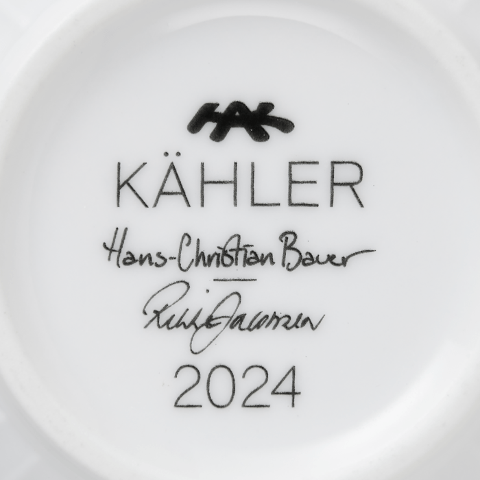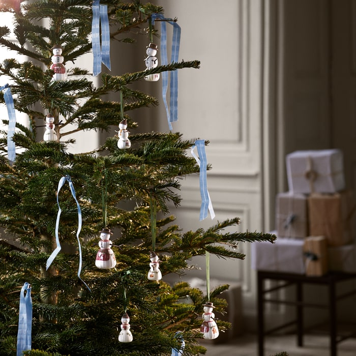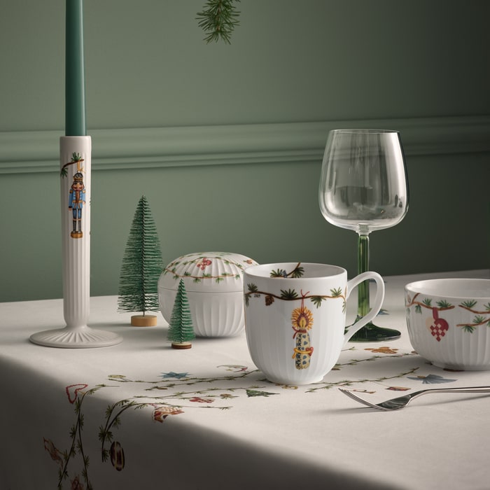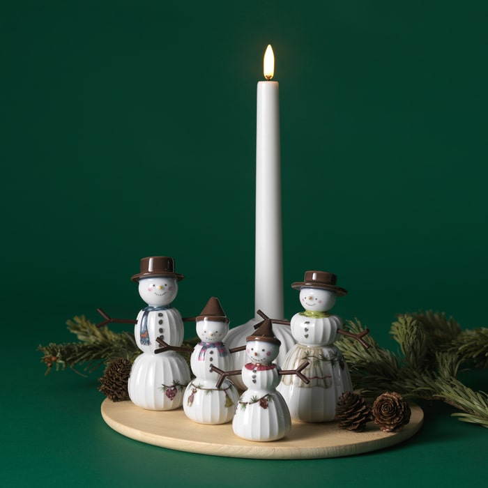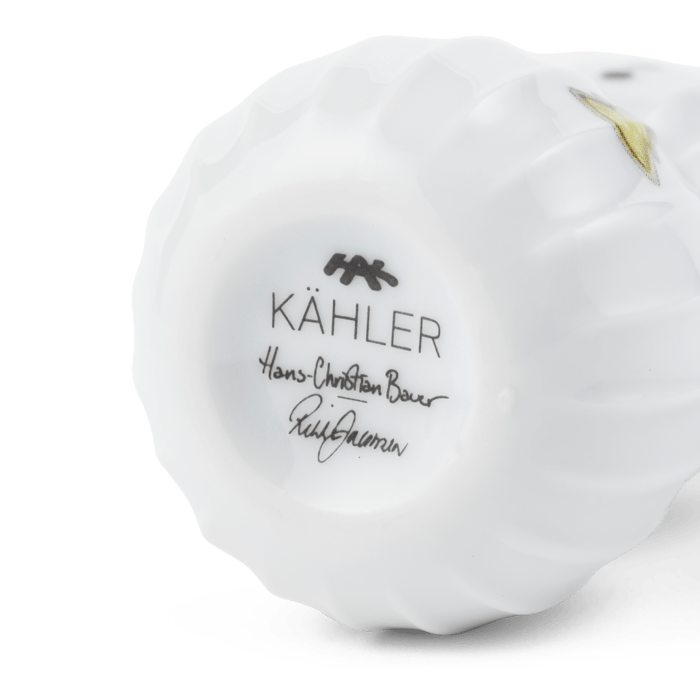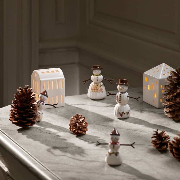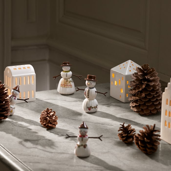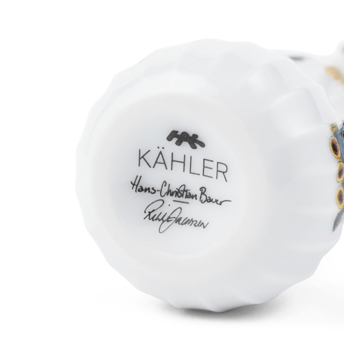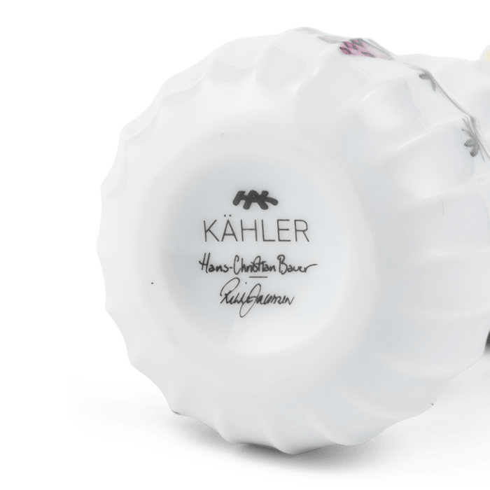 Christmas and handicraft traditions in beautiful harmony. With the family of snowmen from Kähler’s Hammershøi Christmas series, it's easy to bring some authentic yuletide spirit into your home. Naturally, the snowman wears a top hat, just as we would expect him to do. With a height of 4.5" and a diameter of 2.0", complete with the Hammershøi series’ iconic grooves that are characteristic of Hans-Christian Bauer’s dinnerware and table decorations. This model is the standing version of the Snowman, but you can also get a hanging version. Kähler’s snowman family consists of the Snowman, Snowwife, Snowboy and Snowgirl, all decorated in different ways using motifs from the Hammershøi Christmas series, painted in watercolor by Rikke Jacobsen and transferred to the snow-white porcelain.