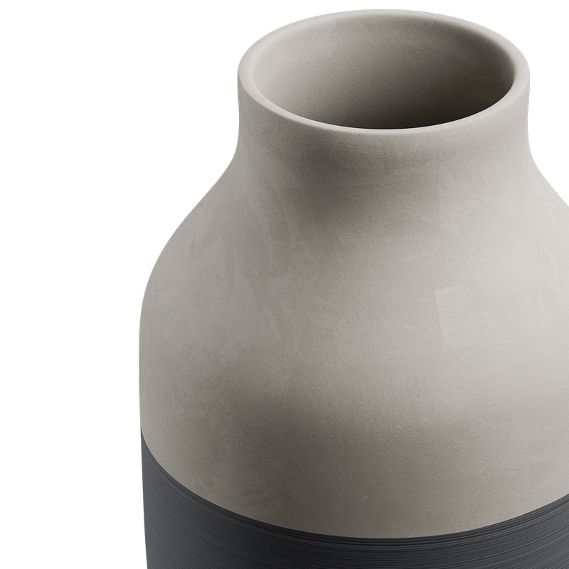 The medium of three vases designed to complement one another, this vase measures 7.9" tall and bears an eye-catching design: a rustic top in light grey which contrasts the hand-painted bottom in anthracite grey. Fill the unique vase with a seasonal bouquet, or leave the vase as is, and let the Circulare collection speak for itself.