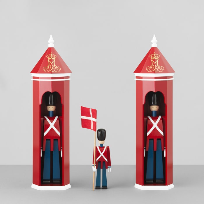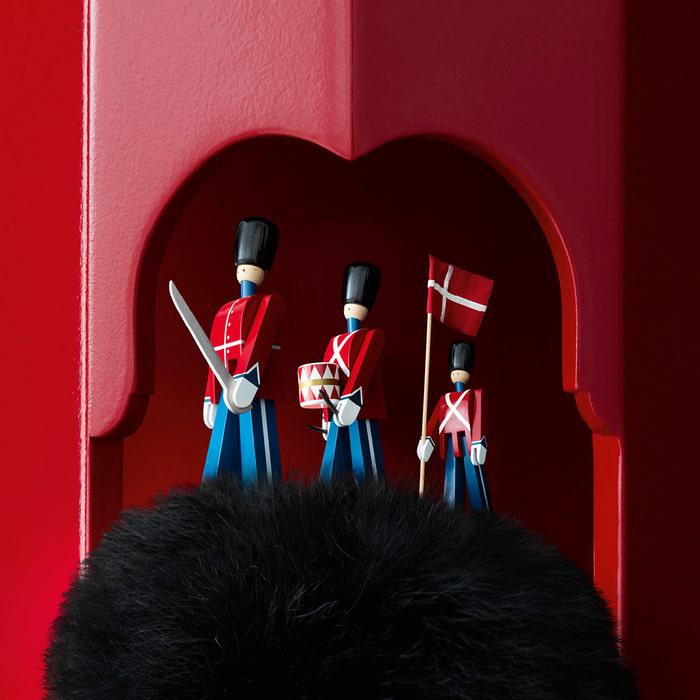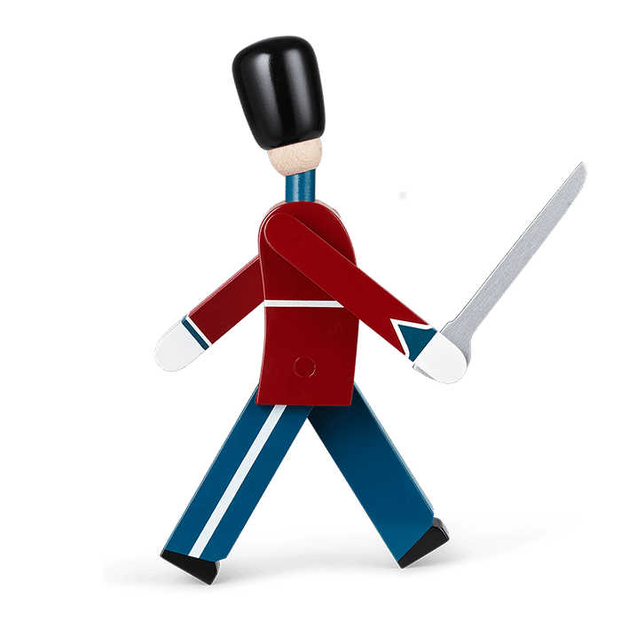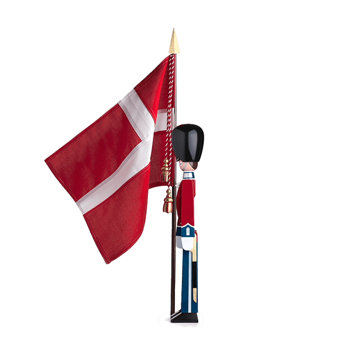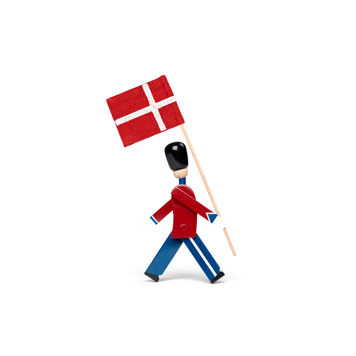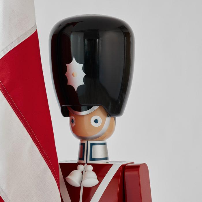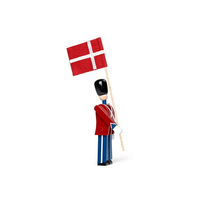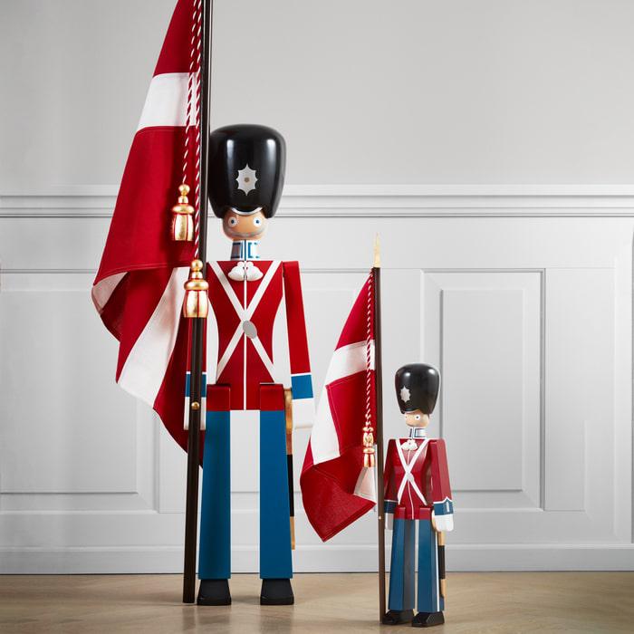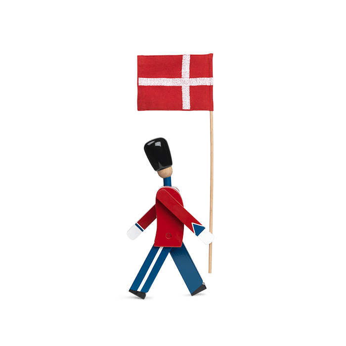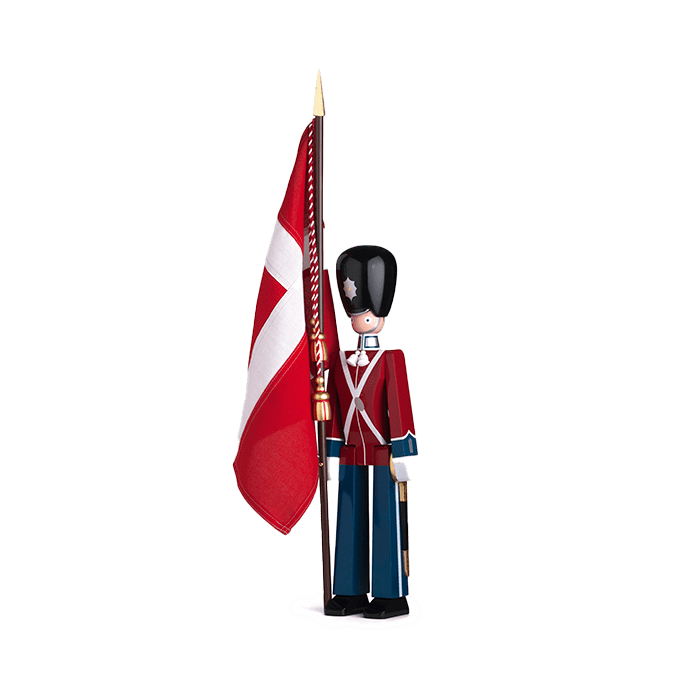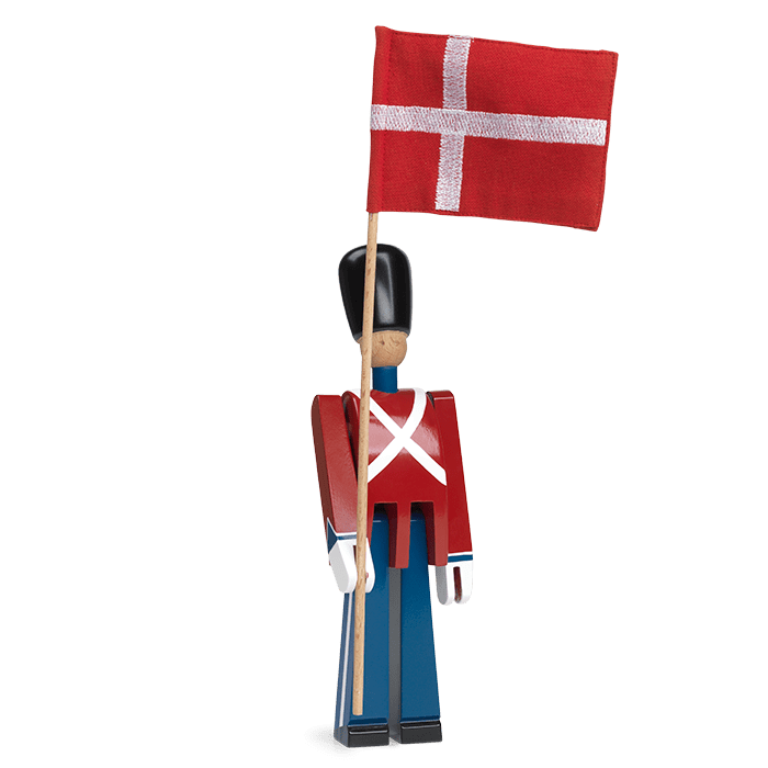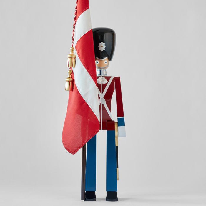 Inspired by one of Denmark's national symbols on the courtyard at Amalienborg Palace, Kay Bojesen created his guardsmen in 1942. The figurines are made from hand-painted beech, and The Standard-Bearer's flag is made of durable spun polyester.