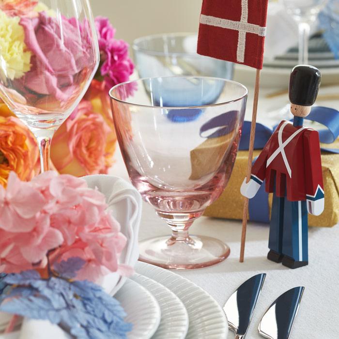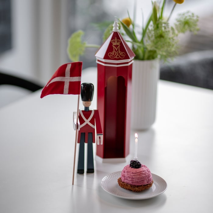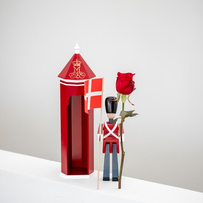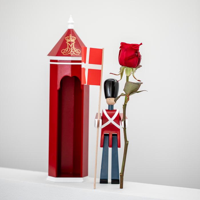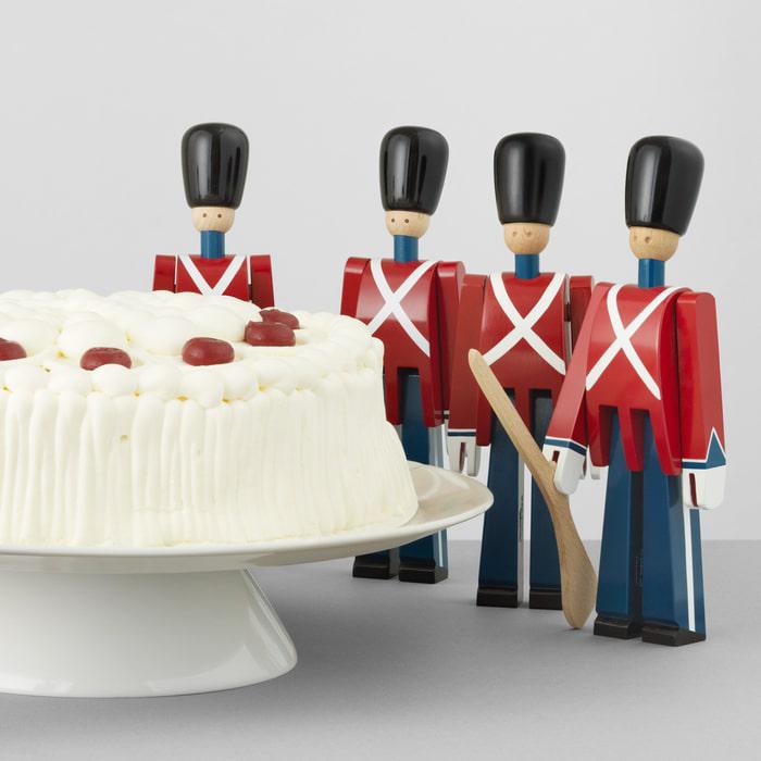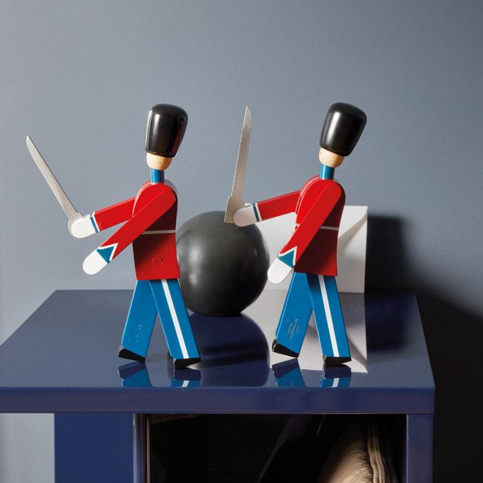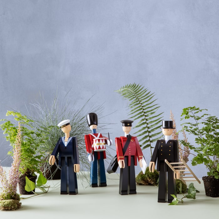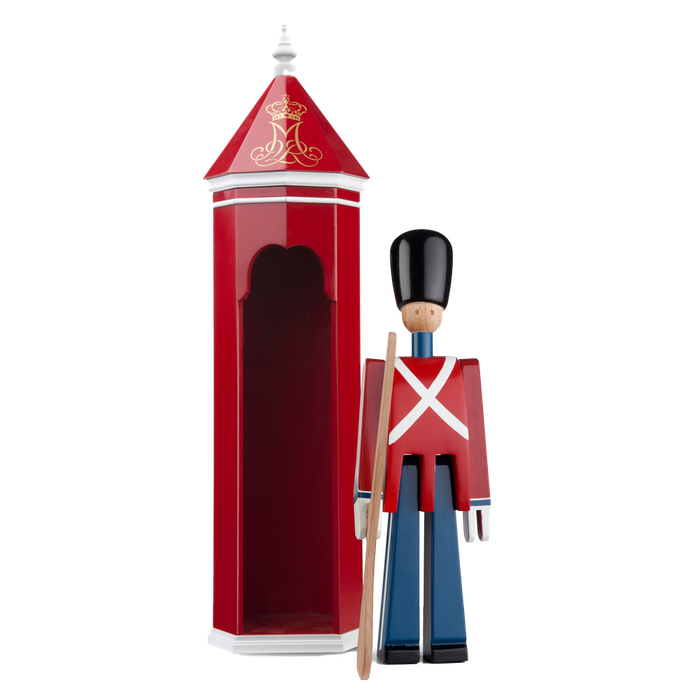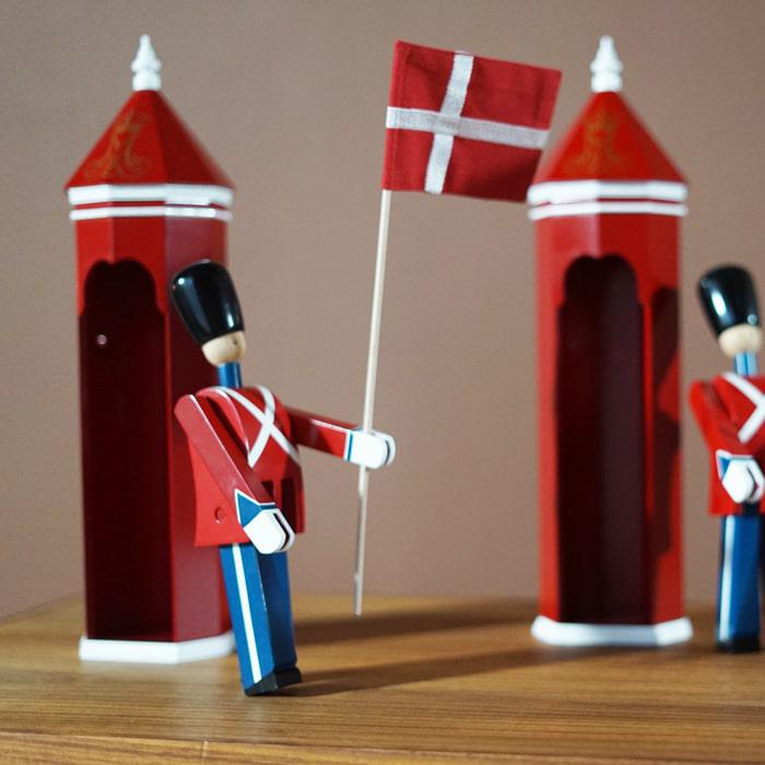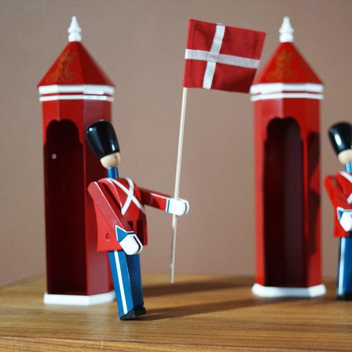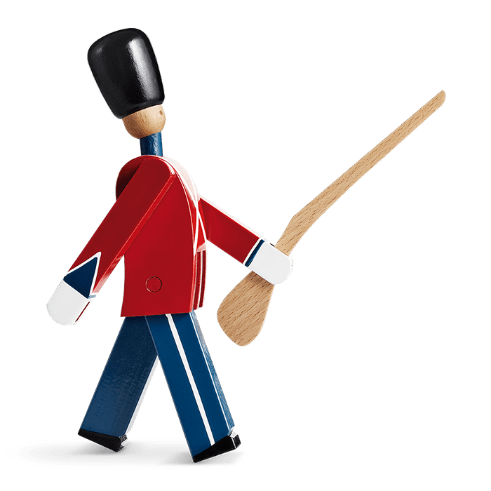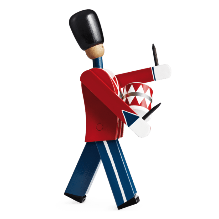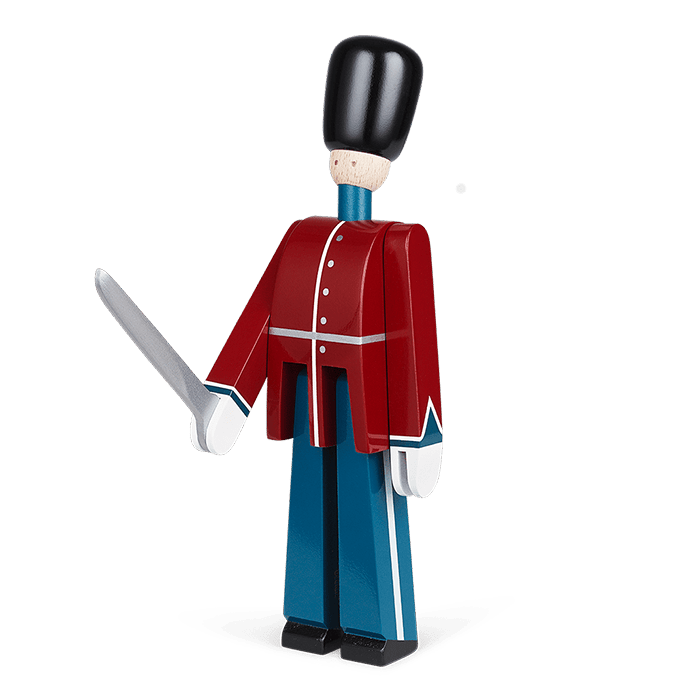 Inspired by one of Denmark's national symbols on the courtyard at Amalienborg Palace, Kay Bojesen created his guardsmen in 1942. The figurines are made from hand-painted beech, and The Standard-Bearer's flag is made of durable spun polyester.