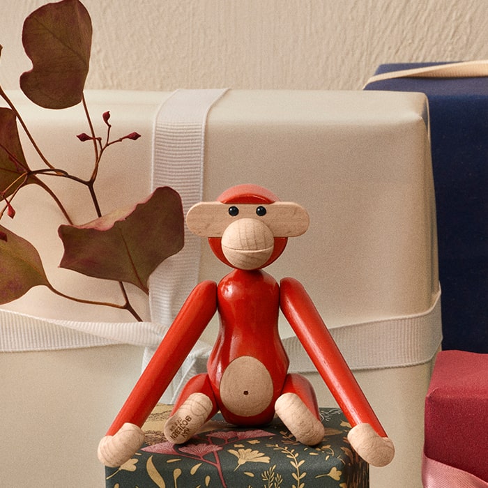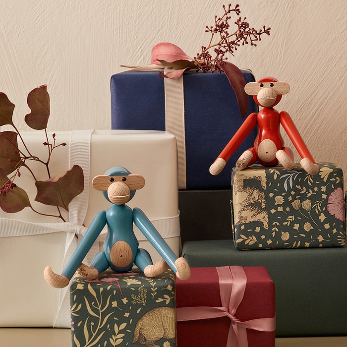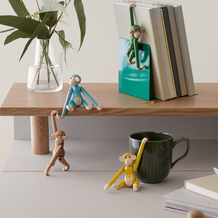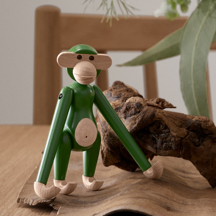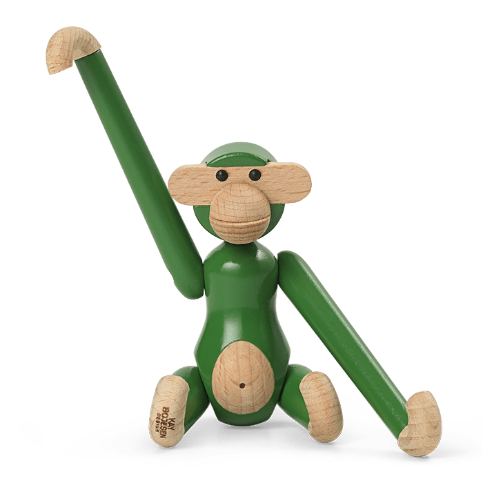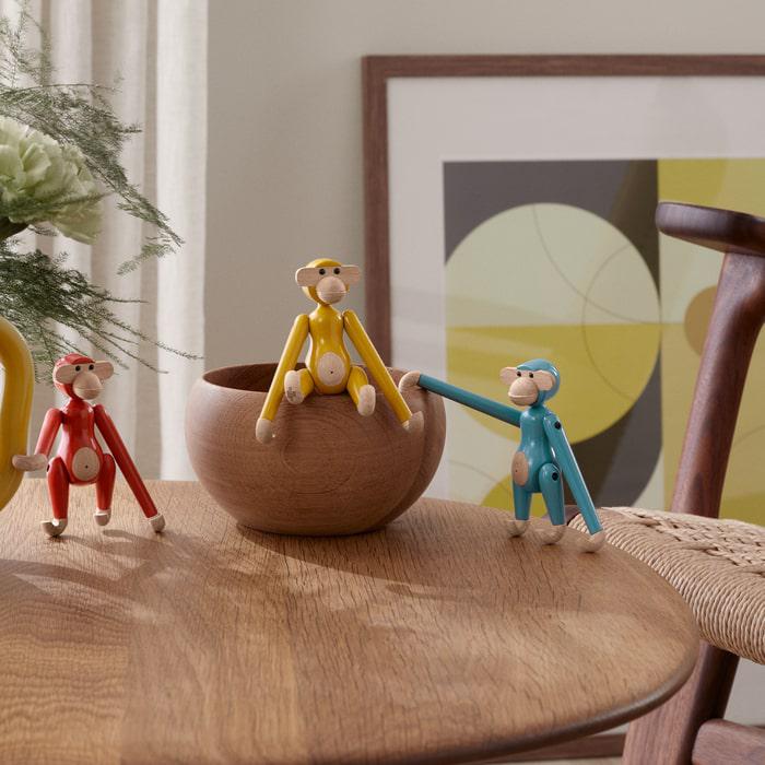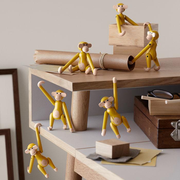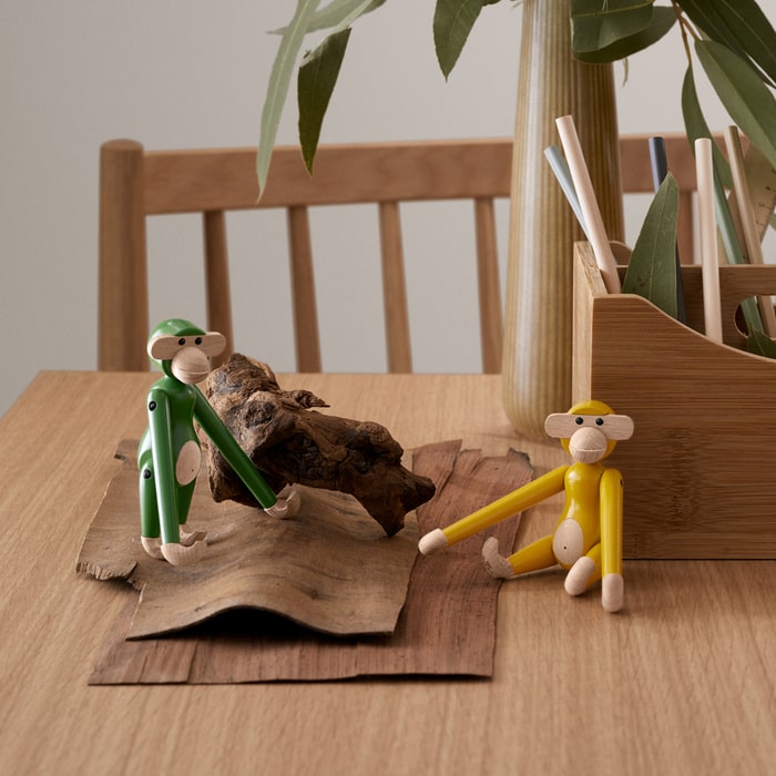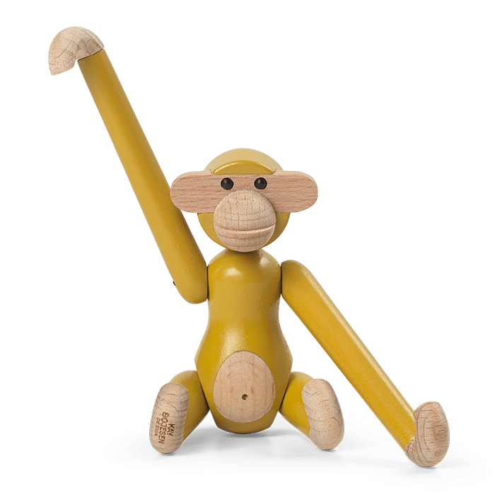 Inspired by an original children's wallpaper designed by KayBojesen in the late 1940s, the mini favorite is also available in Vintage Yellow.The monkey's wonderful yellow shade is retro yet modern, and complements the unique lines of the FSC® certified beech wood. Measuring 3.7" in height, the monkey is also available in Vintage Blue, Vintage Red, and Vintage Green: all original colors from the archives.