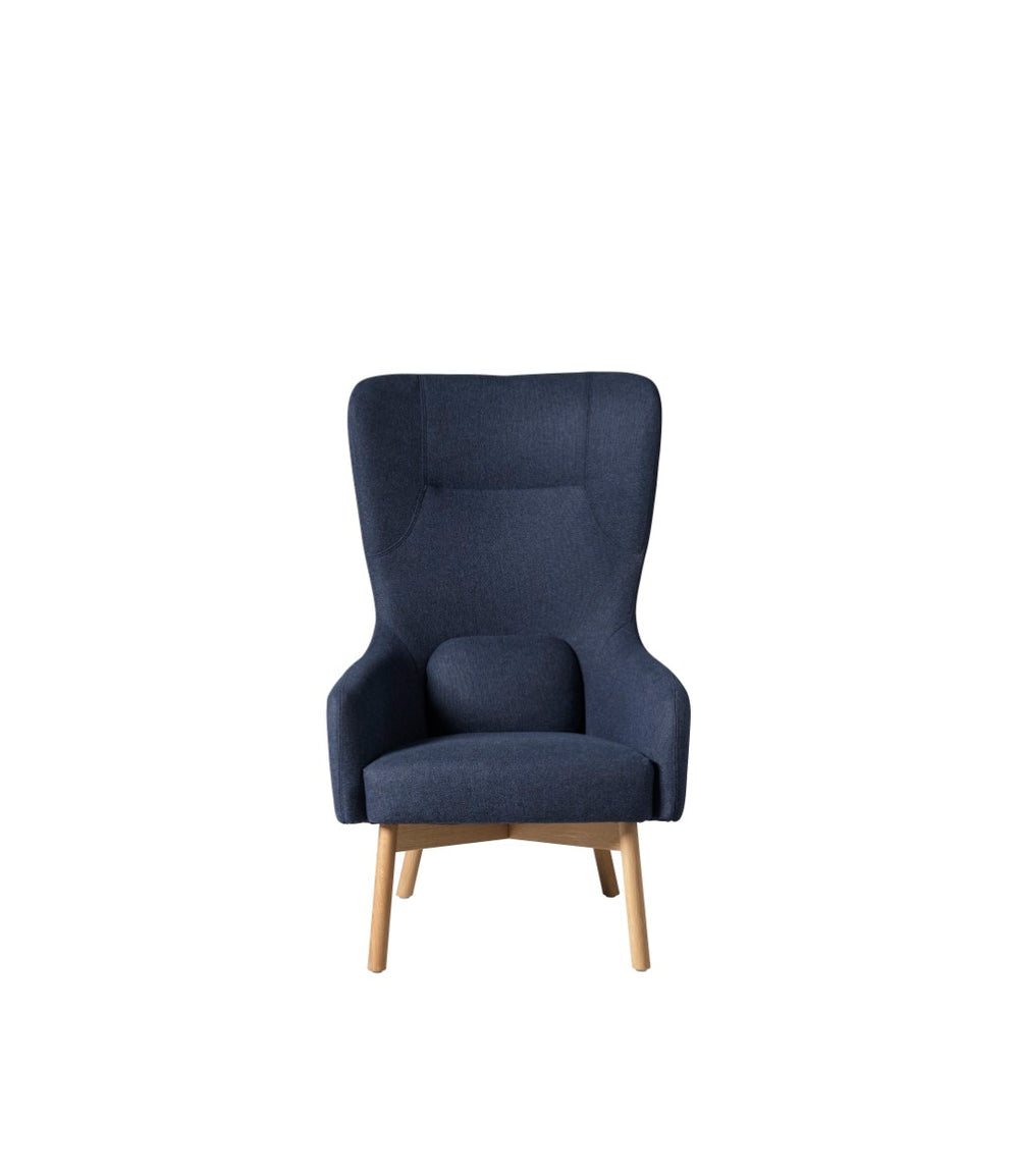 FDB Møbler L35 - Gesja - Wing Chair Oak Solid Nature Lacquered MLF Dark Blue (36) by Foersom & Hiort-Lorenzen