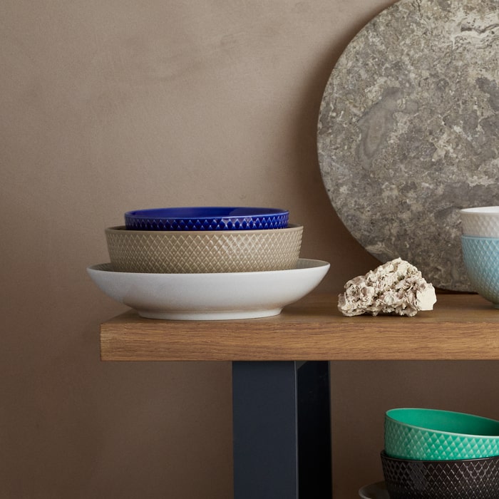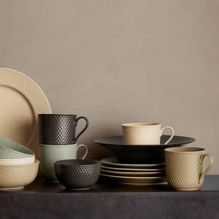 An earthy and balanced look for your table. With a new color palette in four elegant, earthy shades, Rhombe Earth encourages us to slow down, savor our meals, and appreciate both the food and the beauty of the tableware. Like the other muted earthy tones in Rhombe Earth, the color Clay enhances the Rhombe tableware’s iconic relief pattern in a fresh way - inviting us to pay attention to what’s in the bowl, engage with our senses, and enjoy meaningful conversations around the table. Here, the gray and brown hues of the individual Rhombe Earth pieces, along with Lyngby Porcelæn’s signature lines of perfection, create a modern and laid-back look that contrasts beautifully with the clean white porcelain.