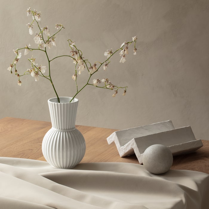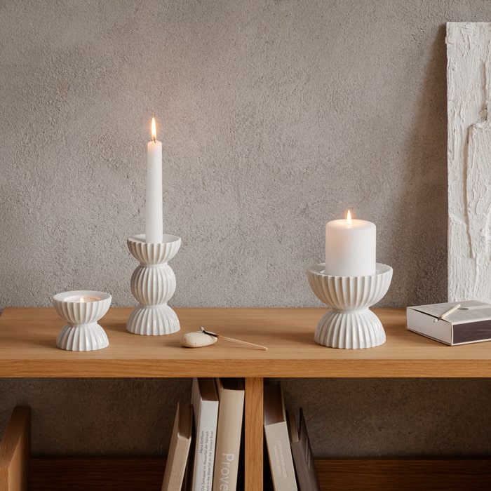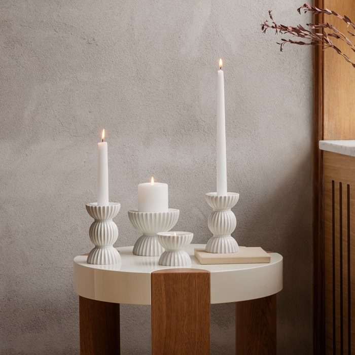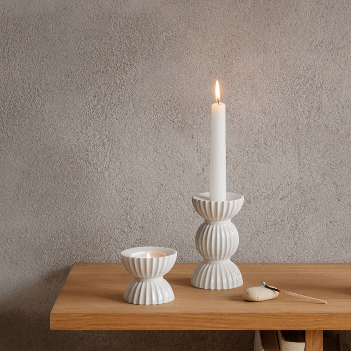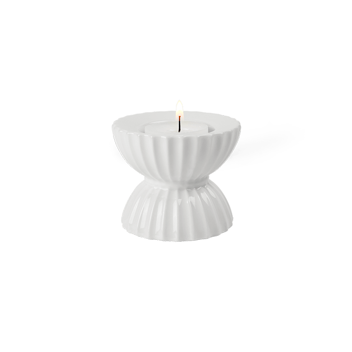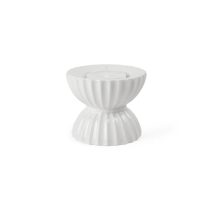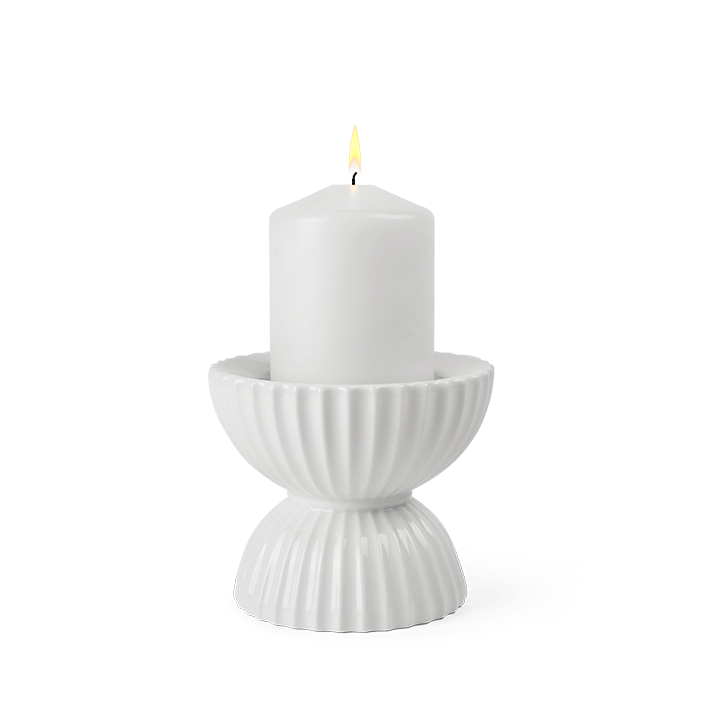 With delicate curves yet an ambience of resilience, the candle holders in the Tura Collection epitomize elegance and distinctive balance. This candle holder measures 2.6" in height and is designed to almost draw the candle into the top hemisphere. The iconic Lyngby grooves follow the distinctive shapes of the candlestick, creating a modern look in the contrast between the stringent and the soft.