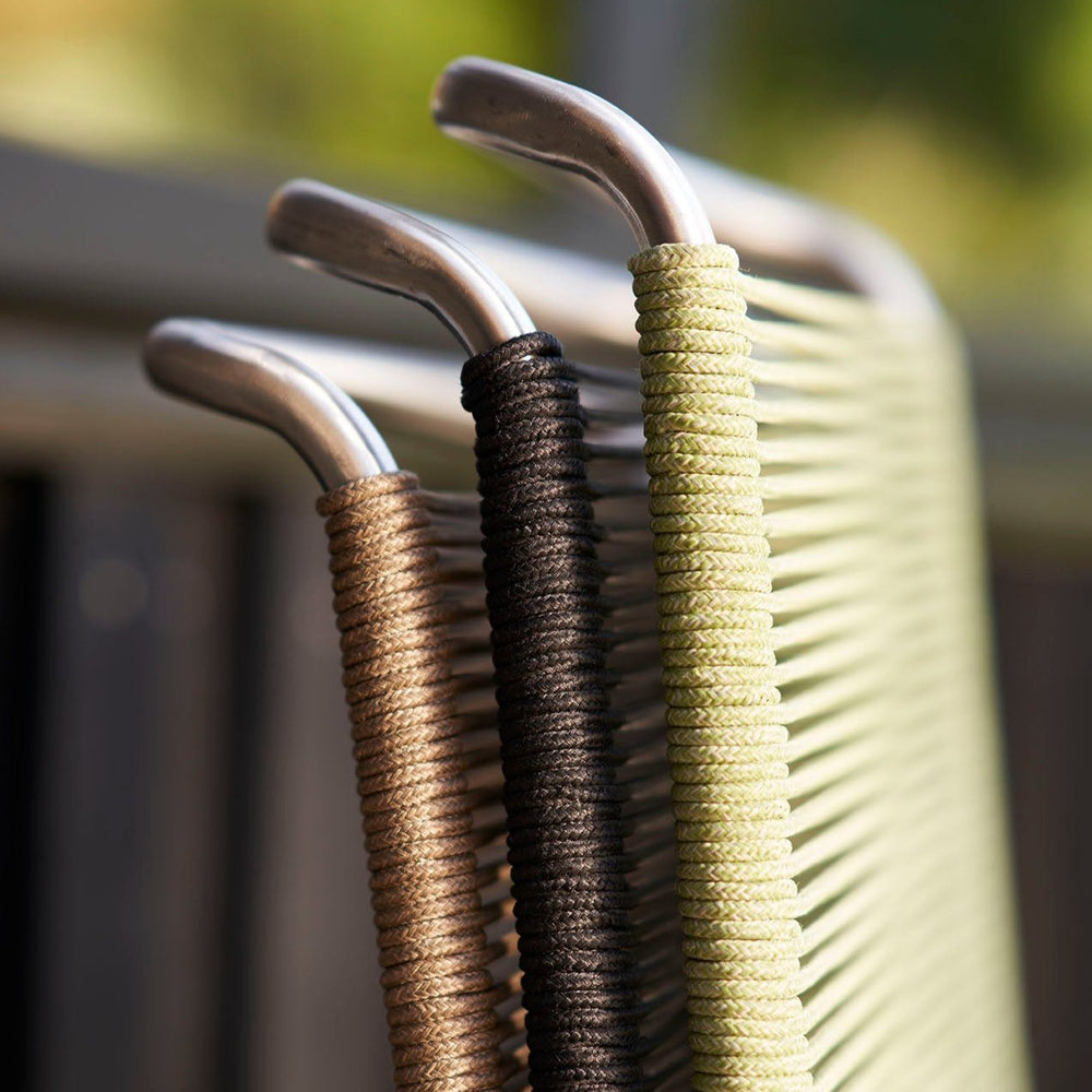 The aesthetic and the practical converge in the Teglgaard chair, designed expressly to withstand Denmark’s often whimsical weather. Built of materials chosen for their outstanding strength, durability, and ability to shed water - brushed stainless steel alloy, polyester cord - it is sturdy, stackable, and dries quickly after a summer shower. A single shake or a quick wipe with a cloth, and the chair is ready for use again. And all without scrimping on seating comfort. When summer comes to Denmark, Teglgaard’s modern design fits in everywhere, whether garden or courtyard, laneway or street.